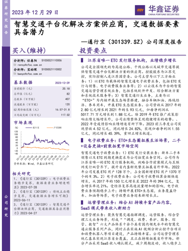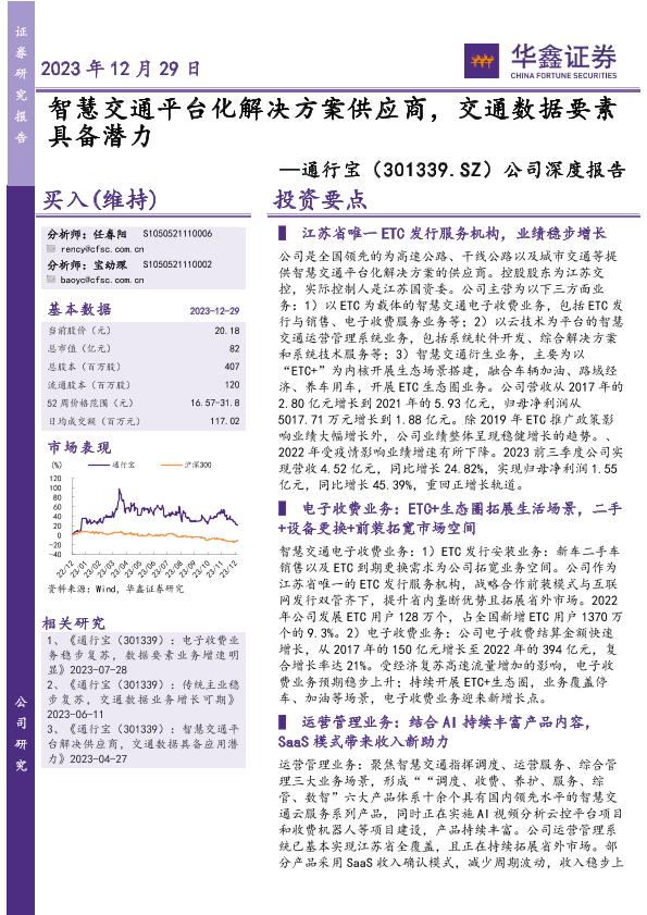 【华鑫证券】【20231229】20231229-华鑫证券-通行宝-301339.SZ-公司深度报告:智慧交通平台化解决方案供应商,交通数据要素具备潜力-29页
