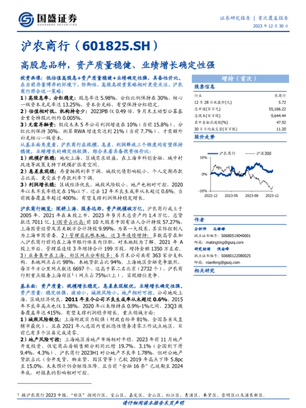 【国盛证券】【20231230】20231230-国盛证券-沪农商行-601825.SH-高股息品种,资产质量稳健、业绩增长确定性强-28页