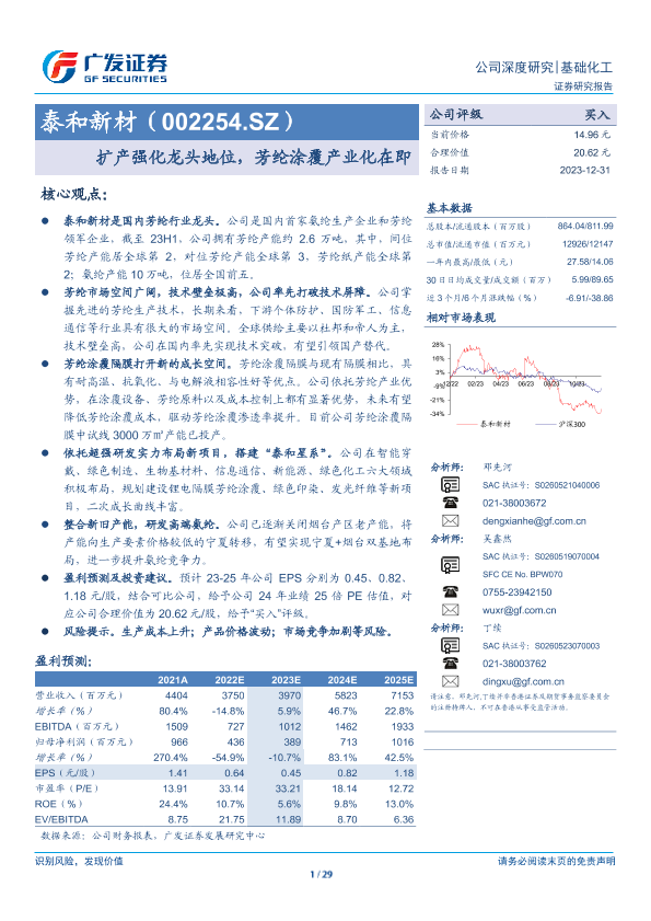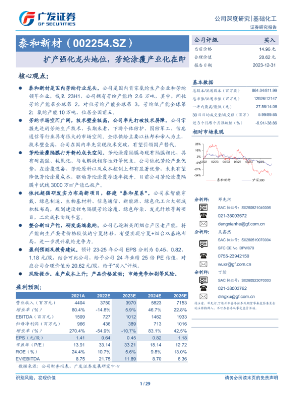 【广发证券】【20231231】扩产强化龙头地位,芳纶涂覆产业化在即-29页