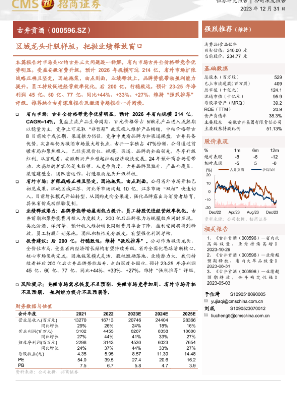 业绩预测 区域市场分析 品牌战略 市场扩展 白酒行业