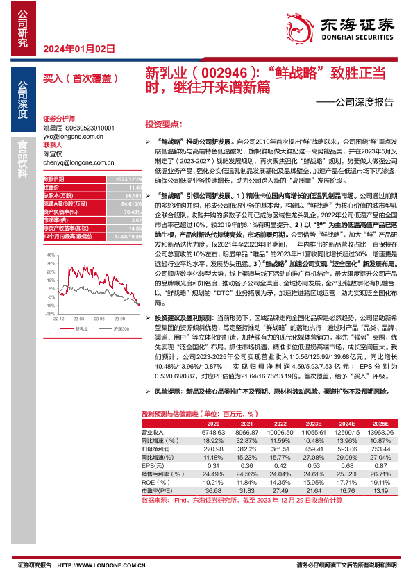 【东海证券】【20240102】新乳业(002946):“鲜战略”致胜正当 时,继往开来谱新篇——公司深度报告-22页
