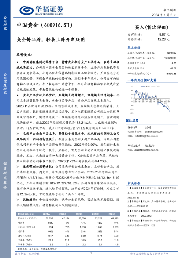 【华福证券】【20240102】中国黄金(600916.SH):央企铸品牌,轻装上阵开新版图-13页