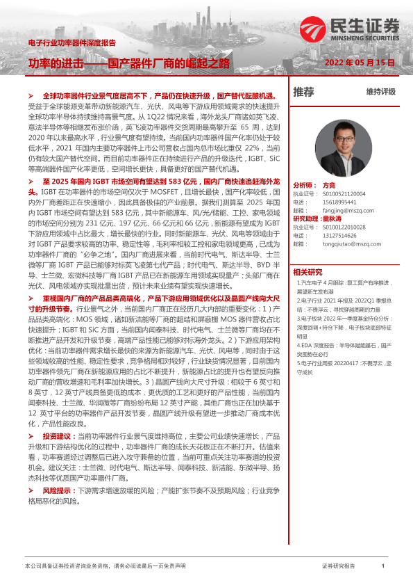 【民生证券】【20220515】电子行业功率器件深度报告:功率的进击_国产器件厂商的崛起之路-36页