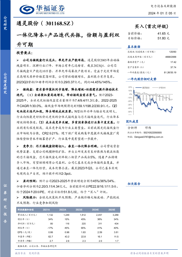 【华福证券】【20240105】通灵股份-301168.SZ-一体化降本+产品迭代共振,份额与盈利双升可期-28页