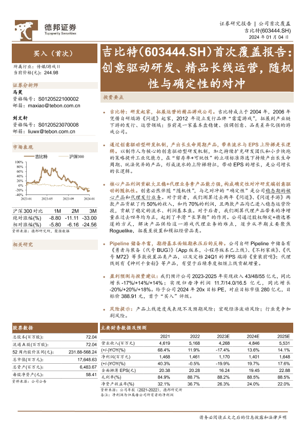【德邦证券】【20240104】20240104-德邦证券-吉比特-603444.SH-首次覆盖报告:创意驱动研发、精品长线运营,随机性与确定性的对冲-26页