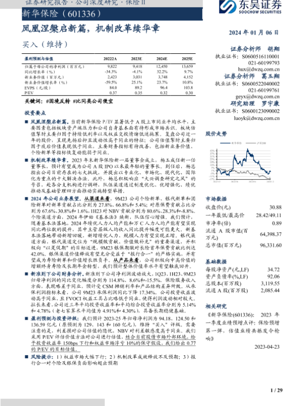 保险行业 寿险公司 新华保险 机制改革 股价分析