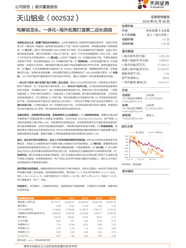 【天风证券】【20240106】天山铝业-002532.SZ-电解铝龙头,一体化+海外拓展打造第二成长曲线-29页