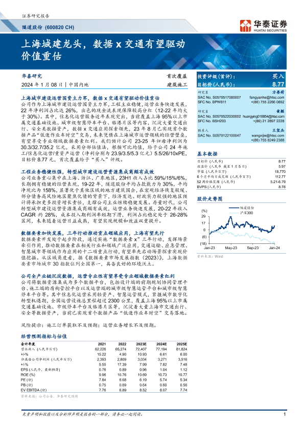 【华泰证券】【20240108】隧道股份(600820 CH):上海城建龙头,数据x交通有望驱动价值重估-30页