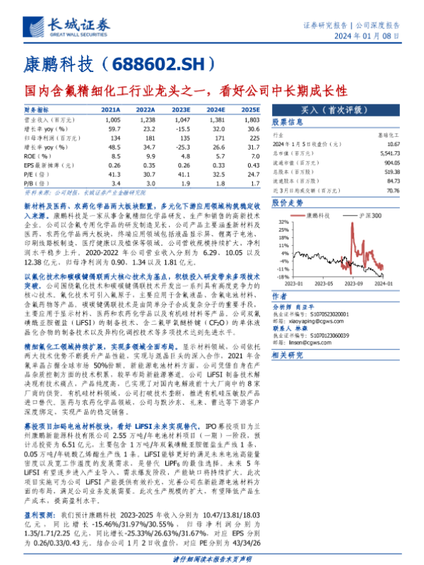 LiFSI 医药农药化学品 含氟精细化工 康鹏科技 新材料