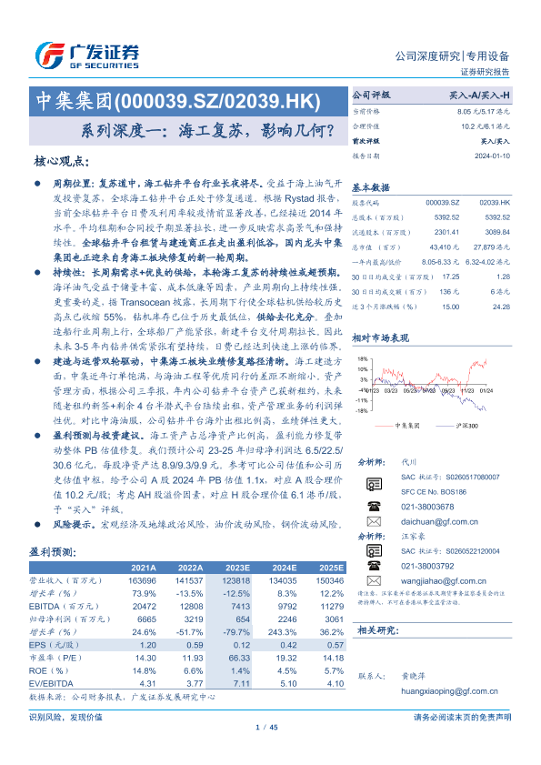 中集集团 油气开发 海工复苏 行业分析 钻井平台