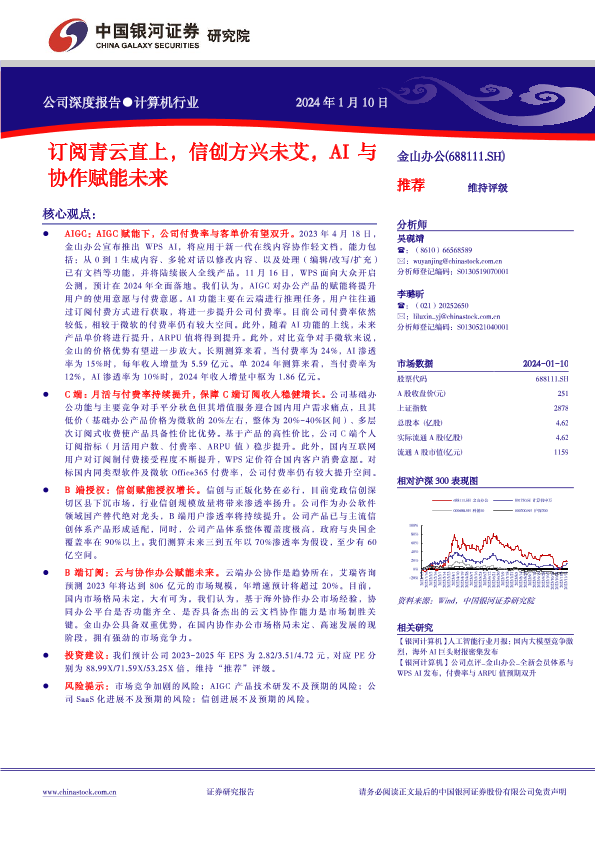 【银河证券】【20240110】订阅青云直上,信创方兴未艾,AI与协作赋能未来-31页