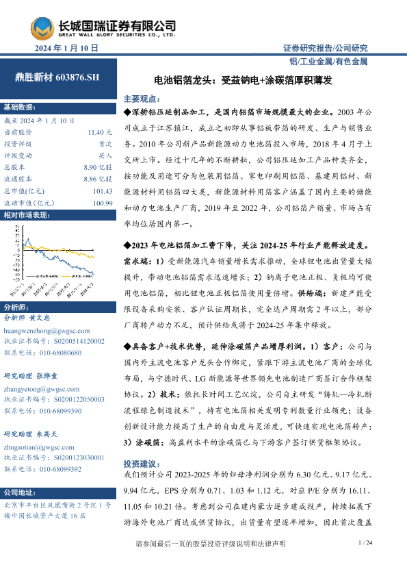 【长城国瑞证券】【20240110】电池铝箔龙头:受益钠电+涂碳箔厚积薄发-24页