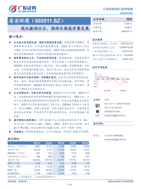 【广发证券】【20240111】盾安环境(002011.SZ)股权激励出台,期待长期高质量发展-22页