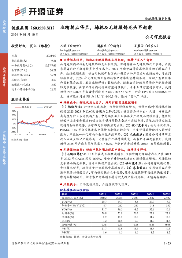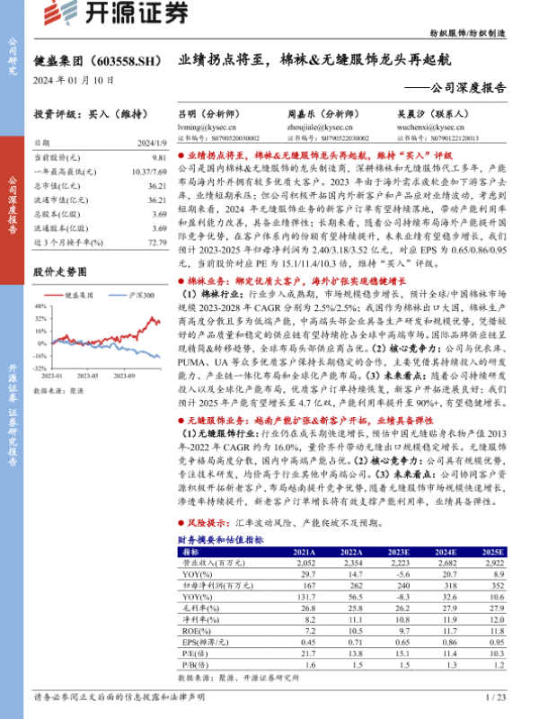 【开源证券】【20240110】20240110-开源证券-健盛集团-603558.SH-公司深度报告:业绩拐点将至,棉袜&无缝服饰龙头再起航-23页