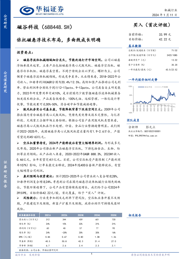 【华福证券】【20240112】磁谷科技(688448.SH)依托磁悬浮技术布局,多曲线成长明确-25页