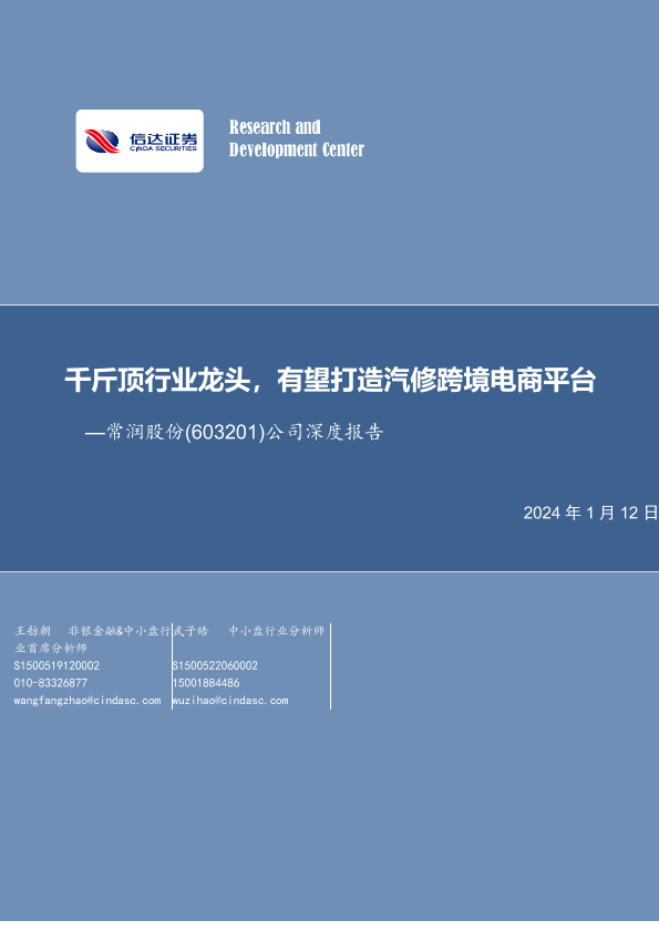 【信达证券】【20240112】千斤顶行业龙头,有望打造汽修跨境电商平台-29页