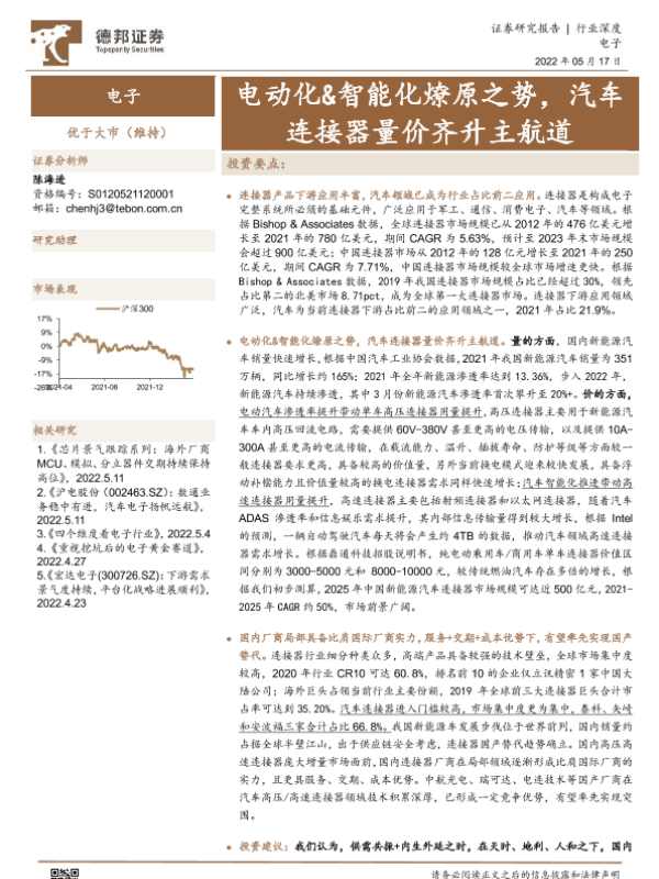 【德邦证券】【20220517】电子行业:电动化&智能化燎原之势,汽车连接器量价齐升主航道-39页