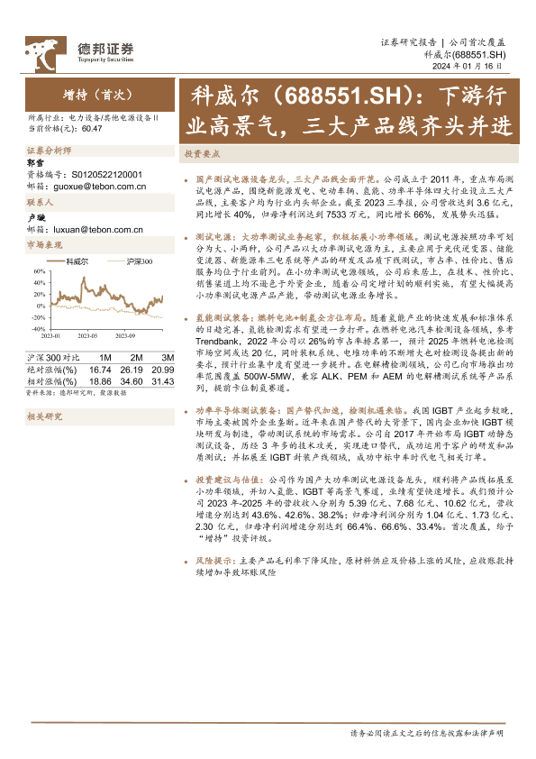 【德邦证券】【20240116】20240116-德邦证券-科威尔-688551.SH-下游行业高景气,三大产品线齐头并进-30页