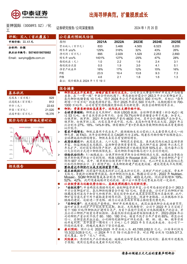 【中泰证券】【20240120】亚钾国际-000893.SZ-出海寻钾典范,扩量提质成长-31页