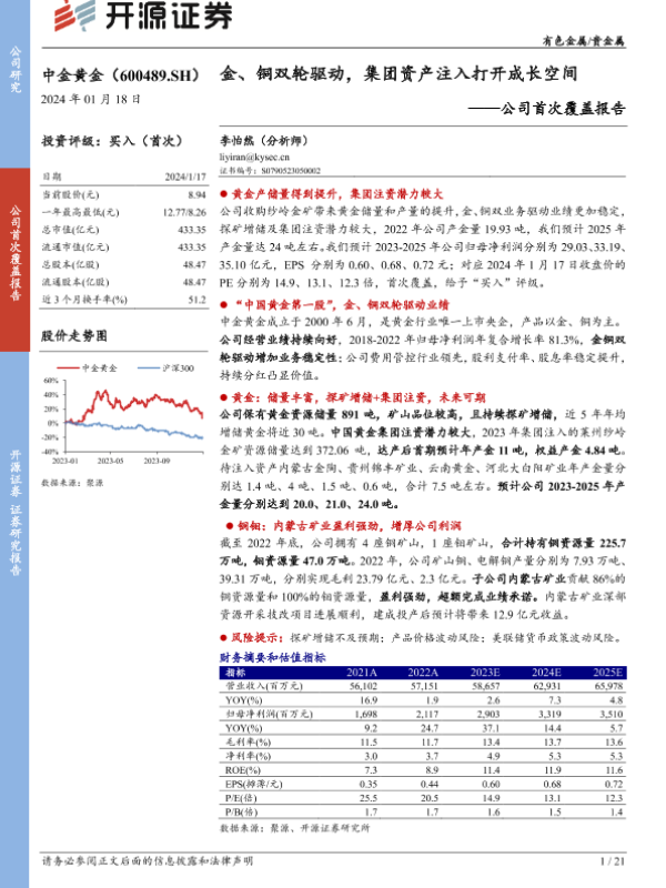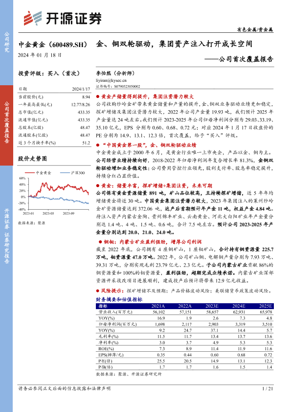 【开源证券】【20240117】中金黄金-600489.SH-公司首次覆盖报告:金、铜双轮驱动,集团资产注入打开成长空间-21页