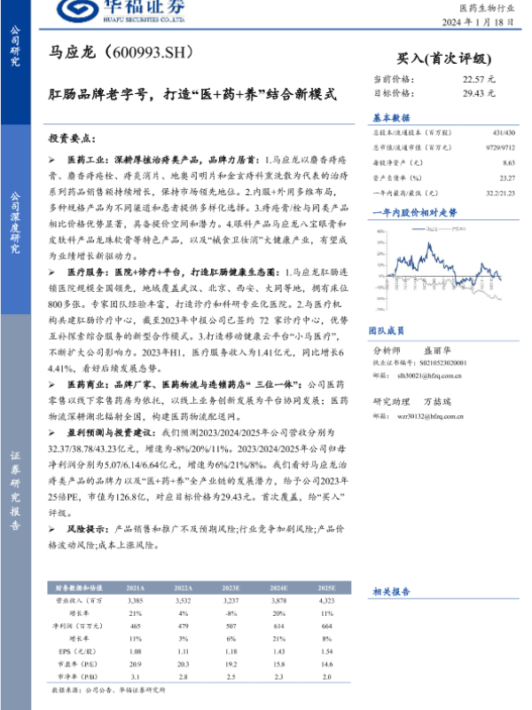 【华福证券】【20240118】马应龙-600993.SH-肛肠品牌老字号,打造“医+药+养”结合新模式-26页