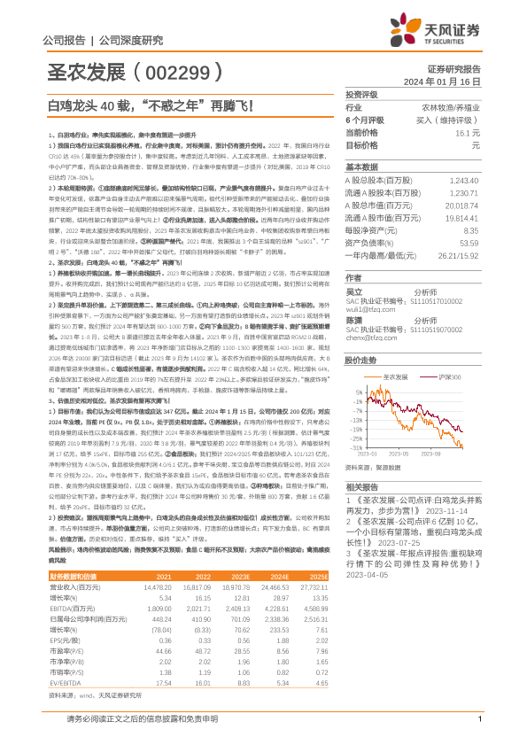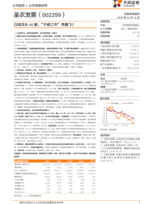 【天风证券】【20240116】圣农发展-白鸡龙头40载,“不惑之年”再腾飞!-24页