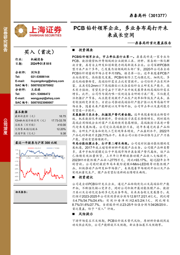 【上海证券】【20240118】鼎泰高科首次覆盖报告:PCB钻针领军企业,多业务布局打开未来成长空间-31页