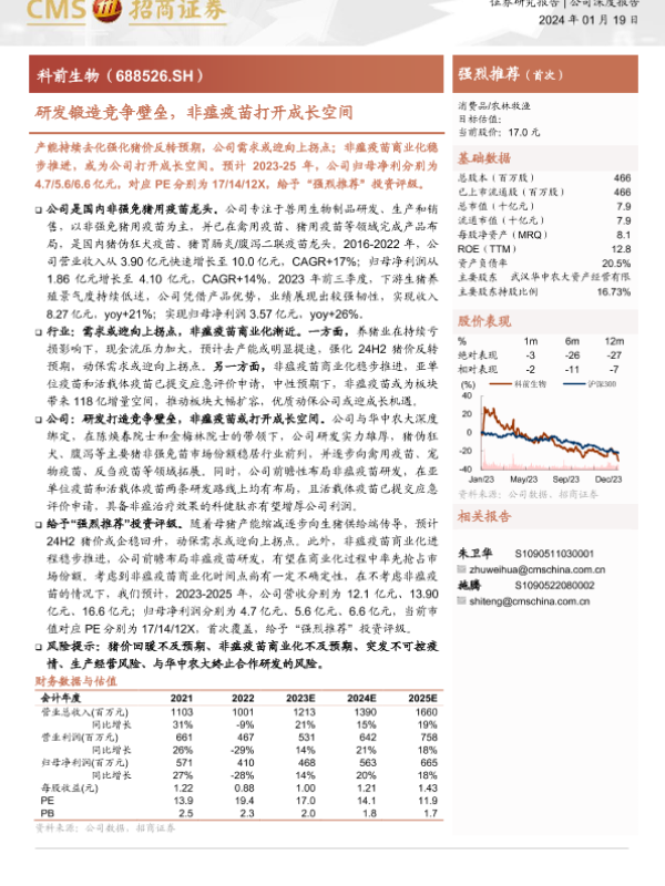 【海通证券】【20240119】研发锻造竞争壁垒,非瘟疫苗打开成长空间-22页