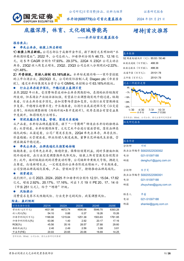 【国元证券】【20240121】20240121-国元证券-水井坊-600779.SH-首次覆盖报告:底蕴深厚,体育、文化领域势能高-26页
