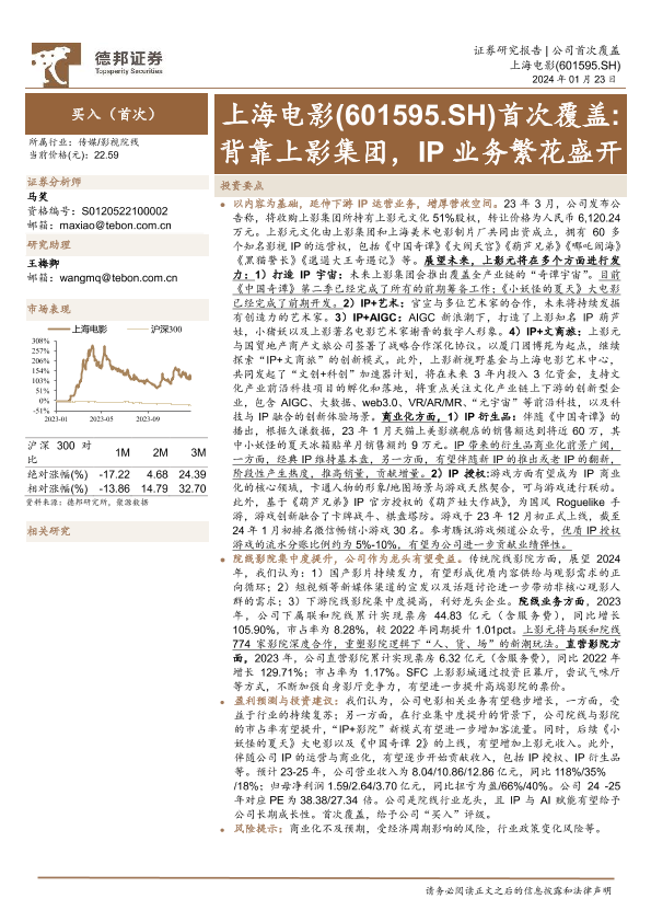 【德邦证券】【20240123】20240123-德邦证券-上海电影-601595.SH-首次覆盖:背靠上影集团,IP业务繁花盛开-27页