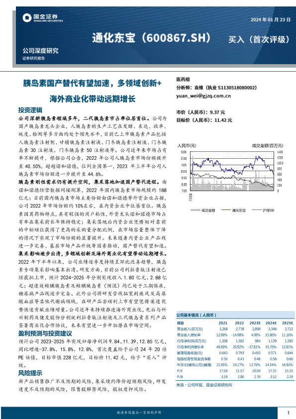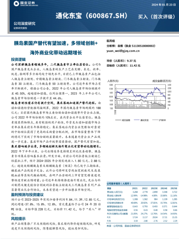 【国金证券】【20240123】通化东宝-胰岛素国产替代有望加速,多领域创新+海外商业化带动远期增长-25页