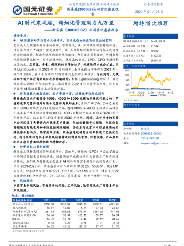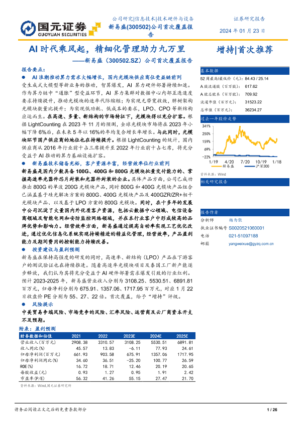 【国元证券】【20240123】AI时代乘风起,精细化管理助力九万里——新易盛(300502.SZ)公司首次覆盖报告-26页
