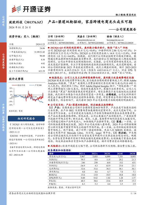 【开源证券】【20240123】产品+渠道双轮驱动,家居跨境电商龙头成长可期-14页