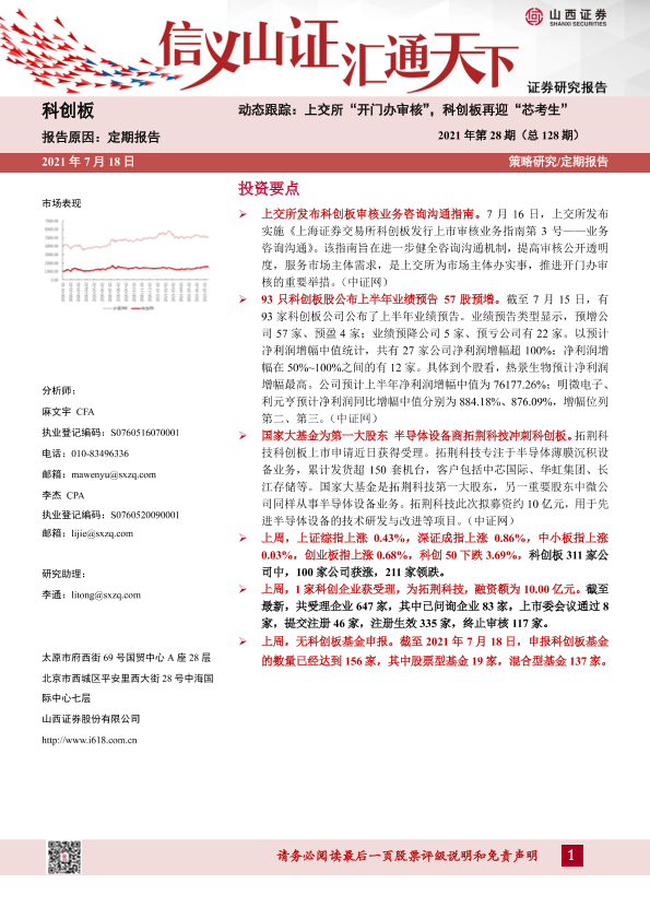 【山西证券】【20210718】动态跟踪2021年第28期(总128期):上交所“开门办审核”,科创板再迎“芯考生”-24页