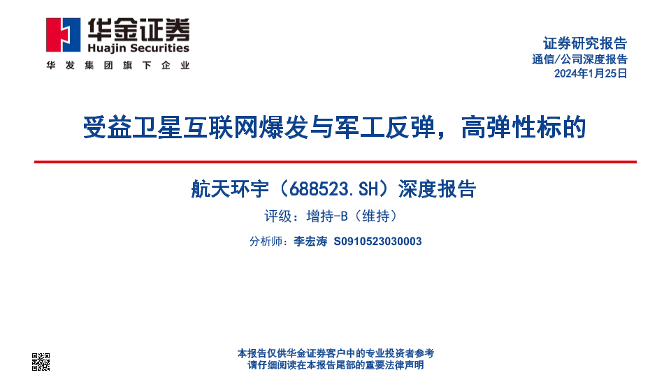 【华金证券】【20240125】航天环宇深度报告:受益卫星互联网爆发与军工反弹,高弹性标的-51页
