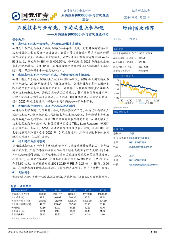 【国元证券】【20240126】20240126-国元证券-石英股份-603688.SH-公司首次覆盖报告:石英技术行业领先,下游放量成长加速-50页