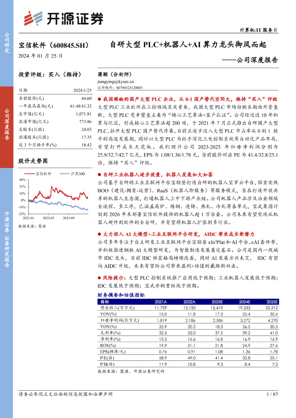 【开源证券】【20240125】宝信软件-公司深度报告:自研大型PLC+机器人+AI算力龙头御风而起-87页