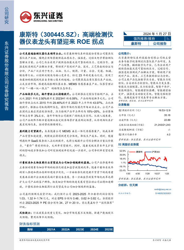 【东兴证券】【20240127】康斯特(300445.SZ):高端检测仪器仪表龙头有望迎来ROE拐点-25页