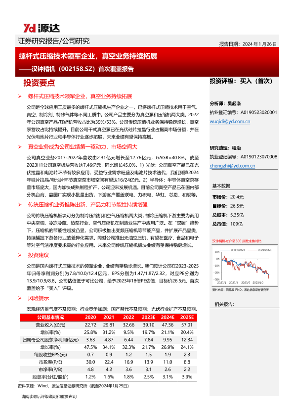 【源达信息】【20240126】螺杆式压缩技术领军企业,真空业务持续拓展-30页