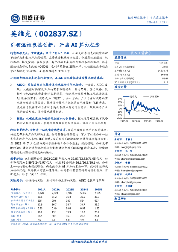 AI算力 数据中心 液冷技术 精密温控 英维克