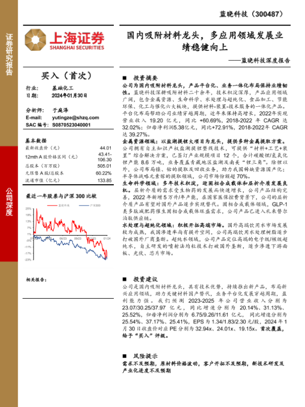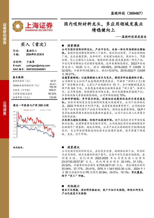 【上海证券】【20240130】蓝晓科技深度报告:国内吸附材料龙头,多应用领域发展业绩稳健向上-39页