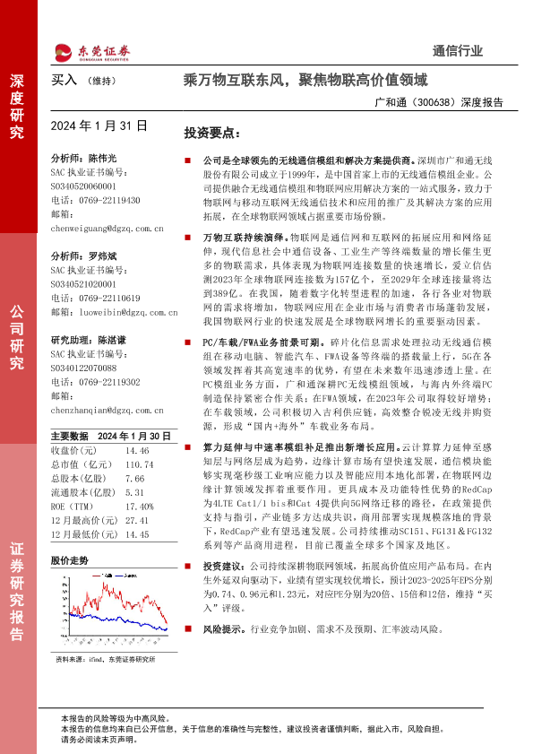 【东莞证券】【20240131】20240131-东莞证券-广和通-300638.SZ-深度报告:乘万物互联东风,聚焦物联高价值领域-22页