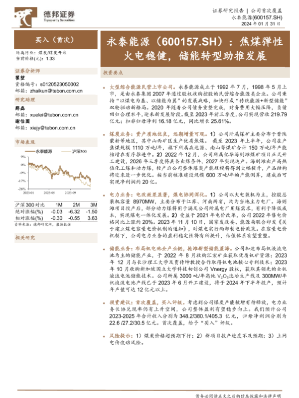 【德邦证券】【20240131】永泰能源:焦煤弹性火电稳健,储能转型助推发展-24页