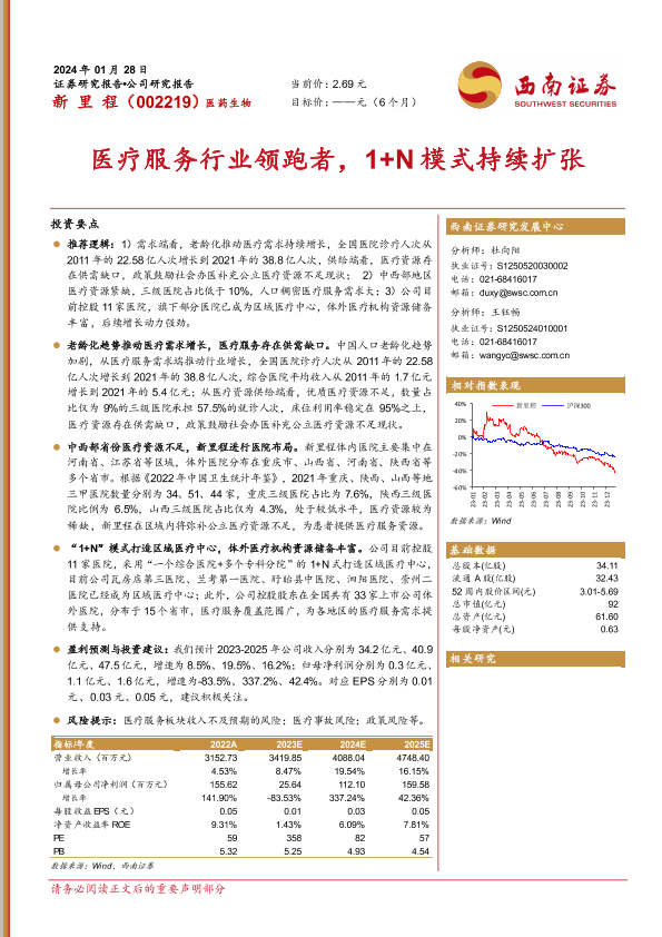 【西南证券】【20240128】新里程-医疗服务行业领跑者,1+N模式持续扩张-25页