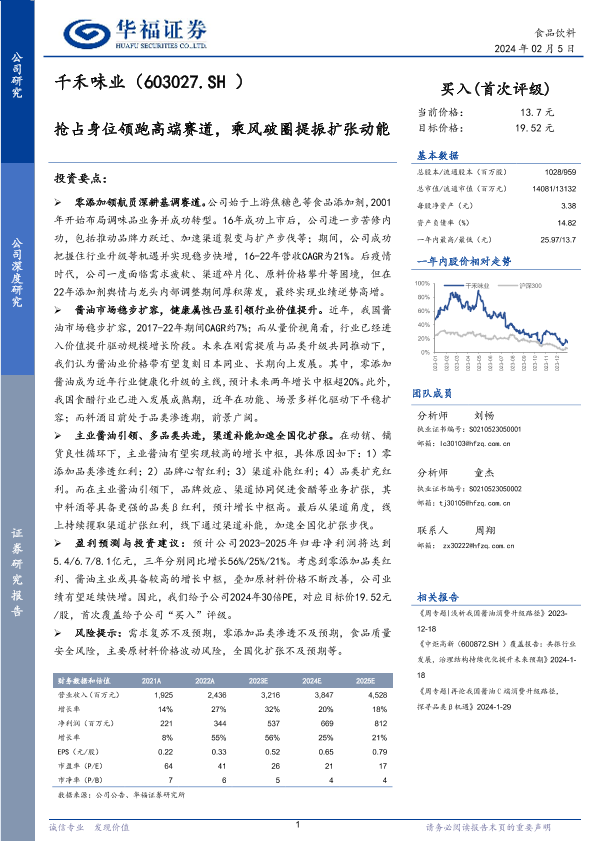 全国化扩张 千禾味业 市场扩容 零添加酱油 高端调味品