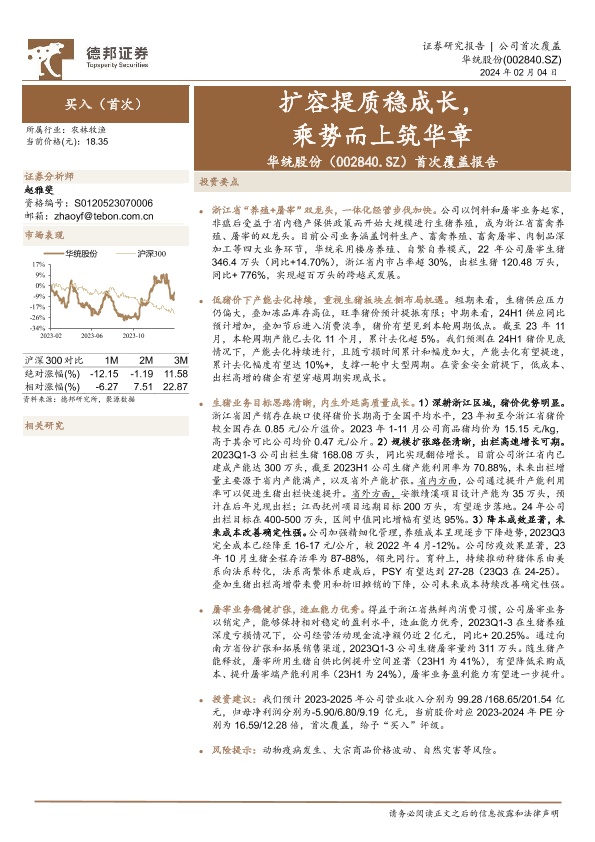 农林牧渔 华统股份 屠宰业务 生猪养殖 首次覆盖