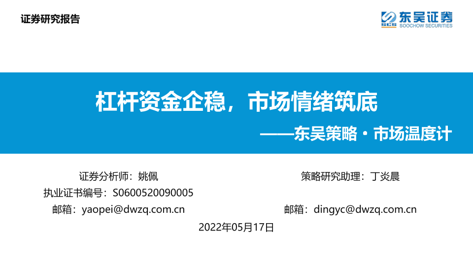【东吴证券】【20220517】策略·市场温度计:杠杆资金企稳,市场情绪筑底-26页