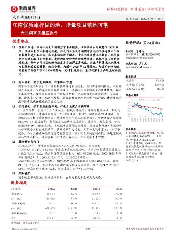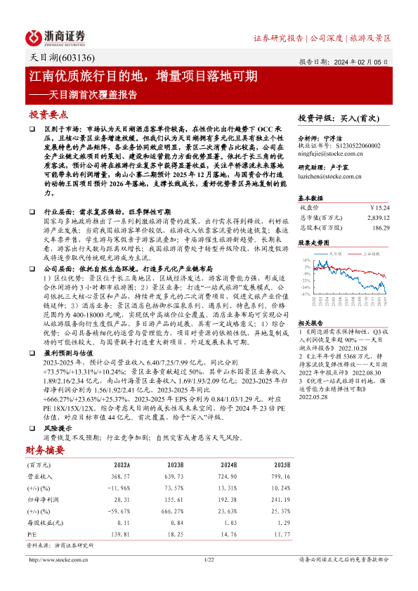【浙商证券】【20240205】天目湖首次覆盖报告:江南优质旅行目的地,增量项目落地可期-22页