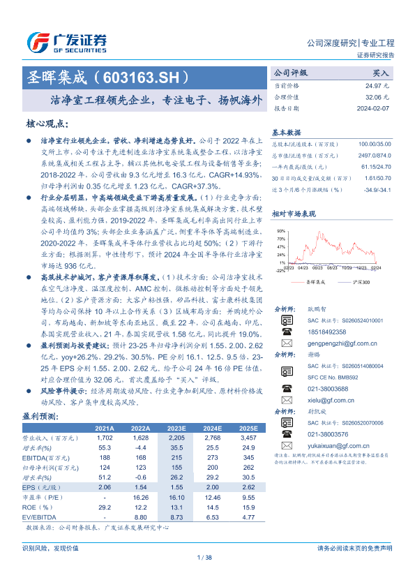 【广发证券】【20240207】圣晖集成(603163.SH):洁净室工程领先企业,专注电子、扬帆海外-38页