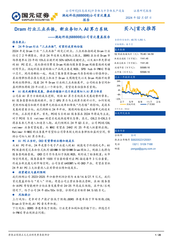 【国元证券】【20240207】Dram行业三点共振,新业务切入AI算力系统-20页